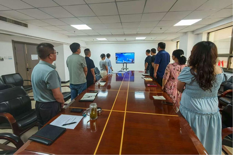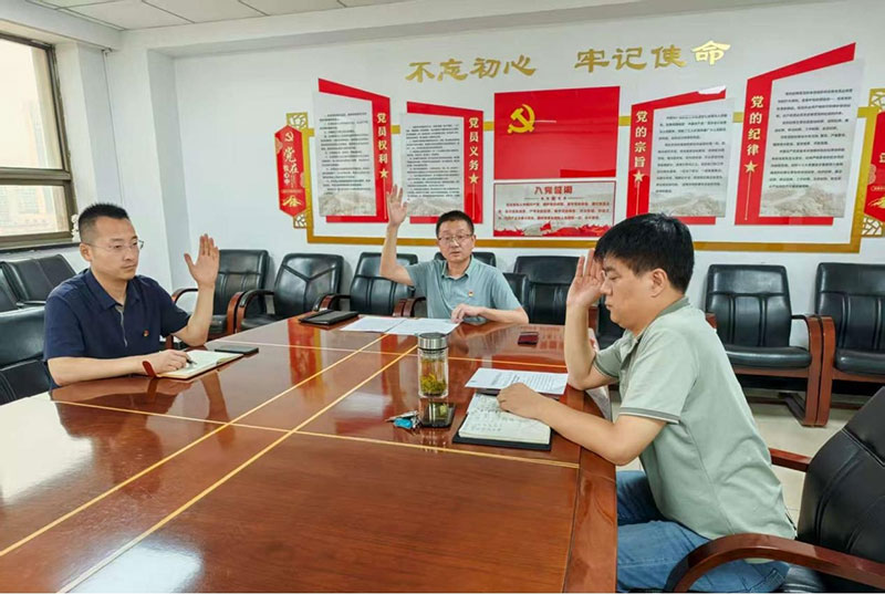 杨鹏飞同志最后号召全体党员:"要以更高标准、更实作风投身支部建设,在技术创新前沿、市场开拓一线、服务提升主战场彰显担当,共同谱写我司发展新篇章!"